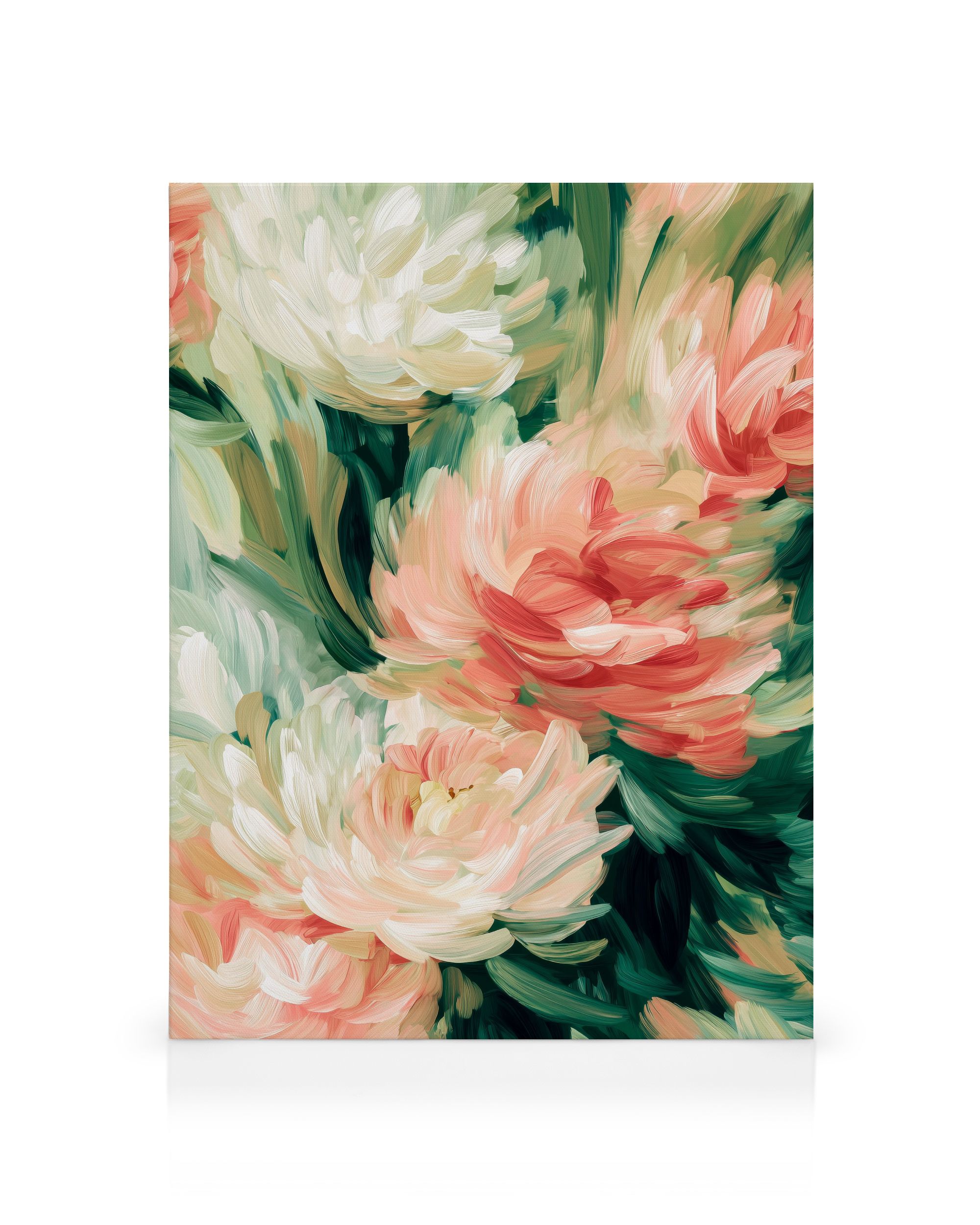 Od 220,50 KčJemné tahy štětcem tvoří krásné květiny v růžové a zelené barvě. Velké květy se mísí s listy a vytvářejí pocit pohybu a hloubky.
