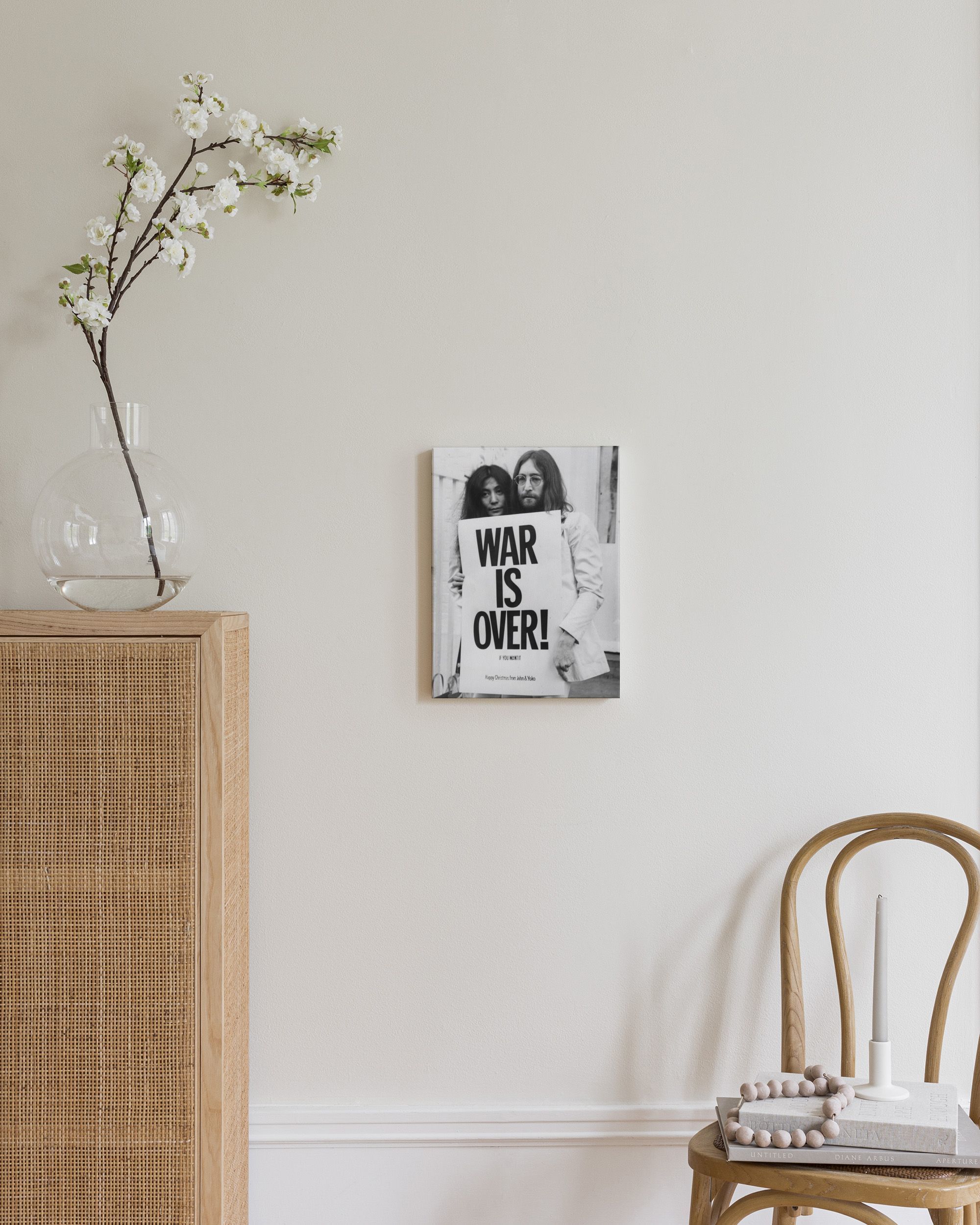 Od 220,50 KčČernobílý obraz na plátně s Johnem Lennonem a Yoko Ono, kteří drží ceduli s nápisem "WAR IS OVER! IF YOU WANT IT". Slavná fotografie z mírové kampaně Johna Lennona a Yoko Ono.