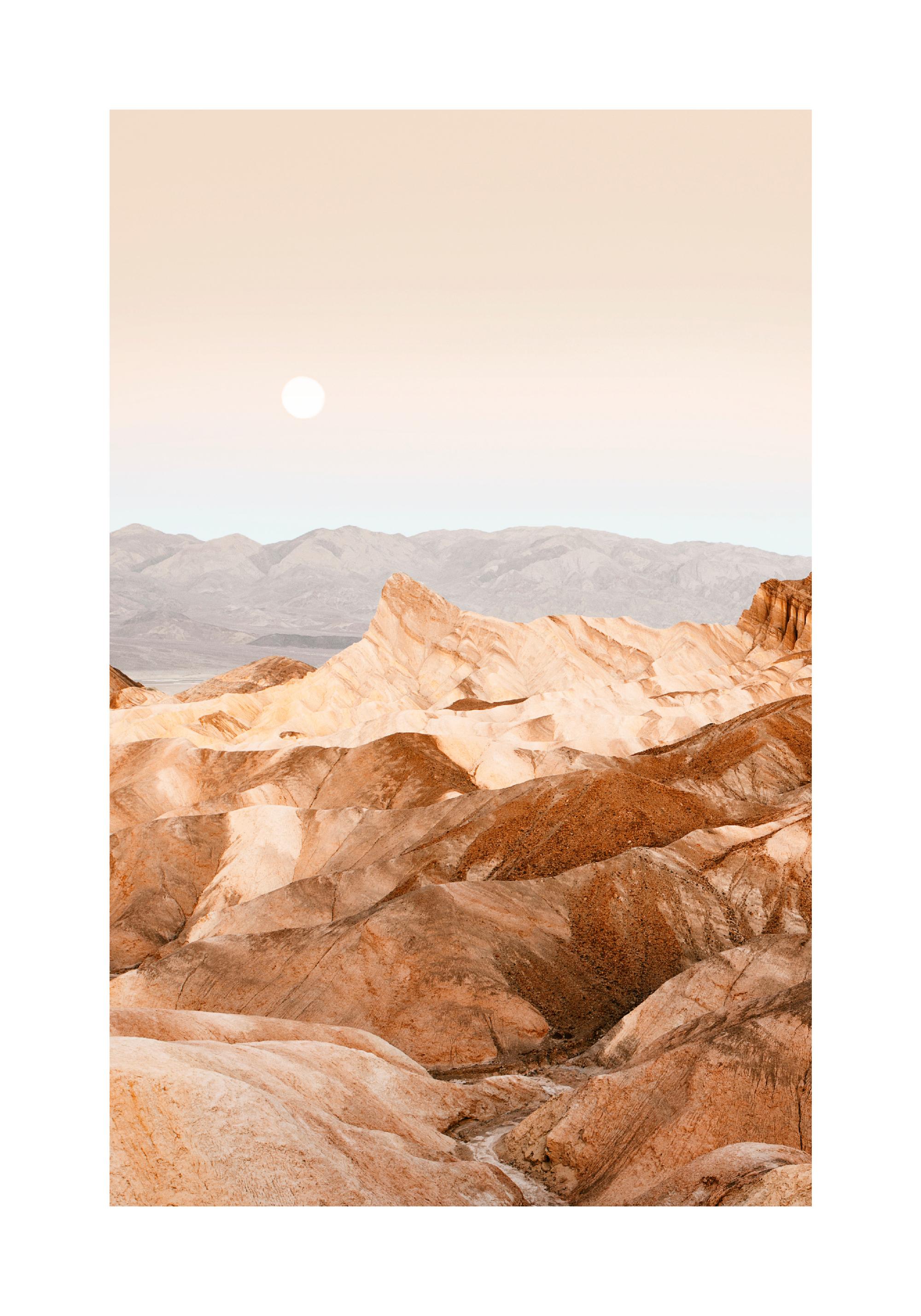 Od 409,50 KčFascinující fotografie měsíce nad národním parkem Death Valley v Kalifornii, USA. Vyhlídka Zabriskie Point nabízí nádherný výhled na velké skalní útvary a okolní horskou krajinu. Ozdobte interiér jemnými tóny země a dodejte svému domovu útulnost a teplo.