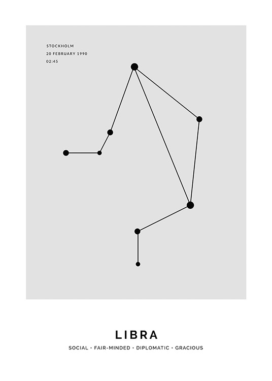 Od 97,80 Kč- Ilustrace znamení Váhy v černé barvě na šedém pozadí upravitelným textem