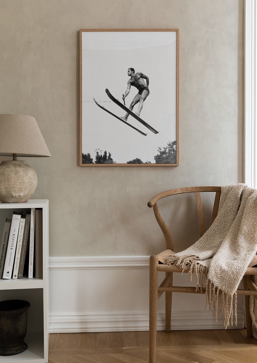 Od 195,60 KčČernobílý plakát zachycuje vodního lyžaře ve vzduchu během skoku. Sportovec drží v ruce lano a má na sobě plavky. Lyže jsou dlouhé a zahnuté. Dynamický snímek plný akce a adrenalinu.